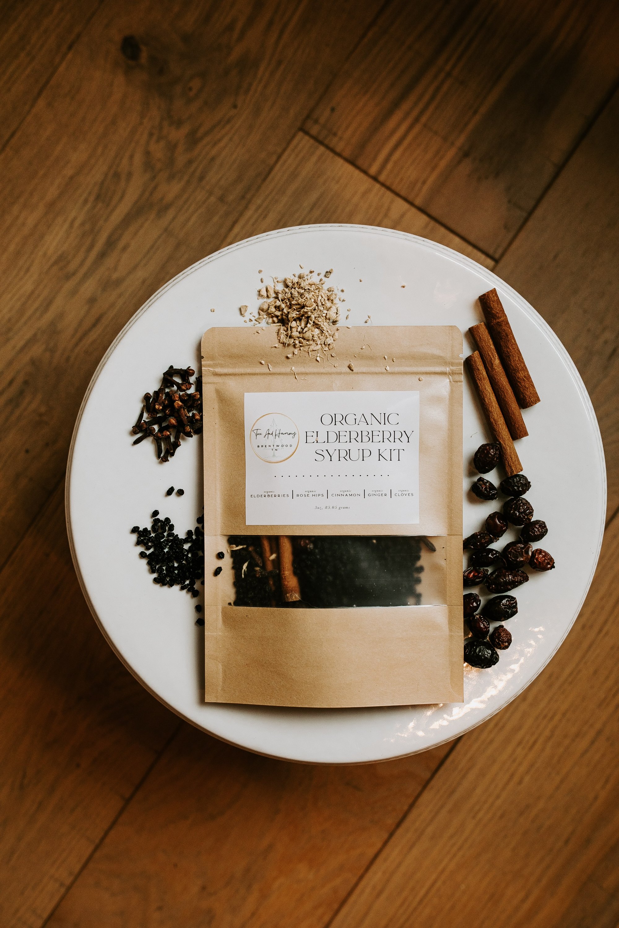 DIY Organic Elderberry syrup kit that you simmer with water, strain using a fine mesh strainer, then add honey or other sweetener. Store in a glass jar in the fridge for up to 6 weeks. This kit should yield 24oz, if not, then add enough water to reach 24 oz.